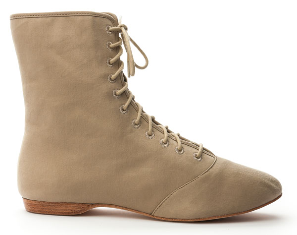 Most significantly, the lack of a toe box means that these boots have no stiffening except for what's necessary at the heel. The entire upper shapes itself to my foot, especially the toe, which is low without being flat. It hugs my ankle, tapering back in over the heel - a really lovely curve. And when worn, it almost gives the effect of being sole-less, since the upper overhangs the sole just a little bit all around, including the toe and heel. It's a very light, graceful look. They're VERY close to these, from the Powerhouse Museum.